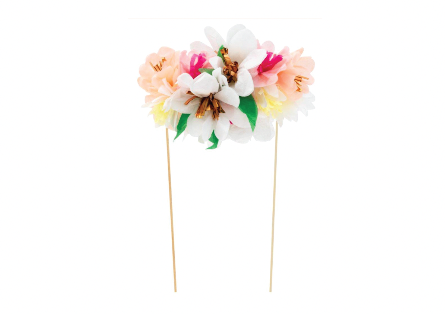 Turn a celebratory cake into a beautiful floral work of art with our fabulous Flower Bouquet cake topper. Featuring fifteen paper flowers and two bamboo skewers, which create a six-inch-wide decoration. Perfect for a birthday, wedding, engagement, anniversary or garden party.